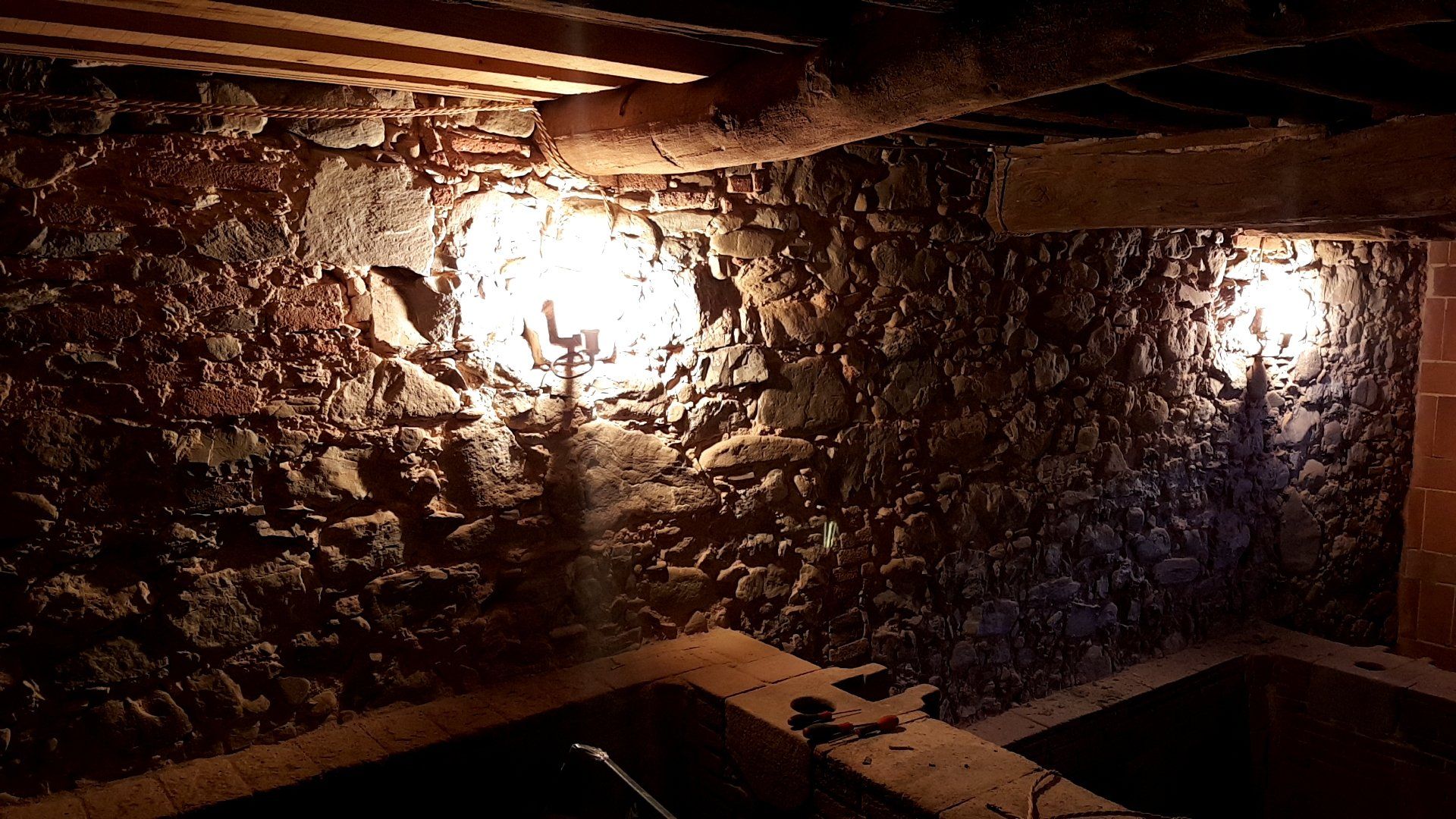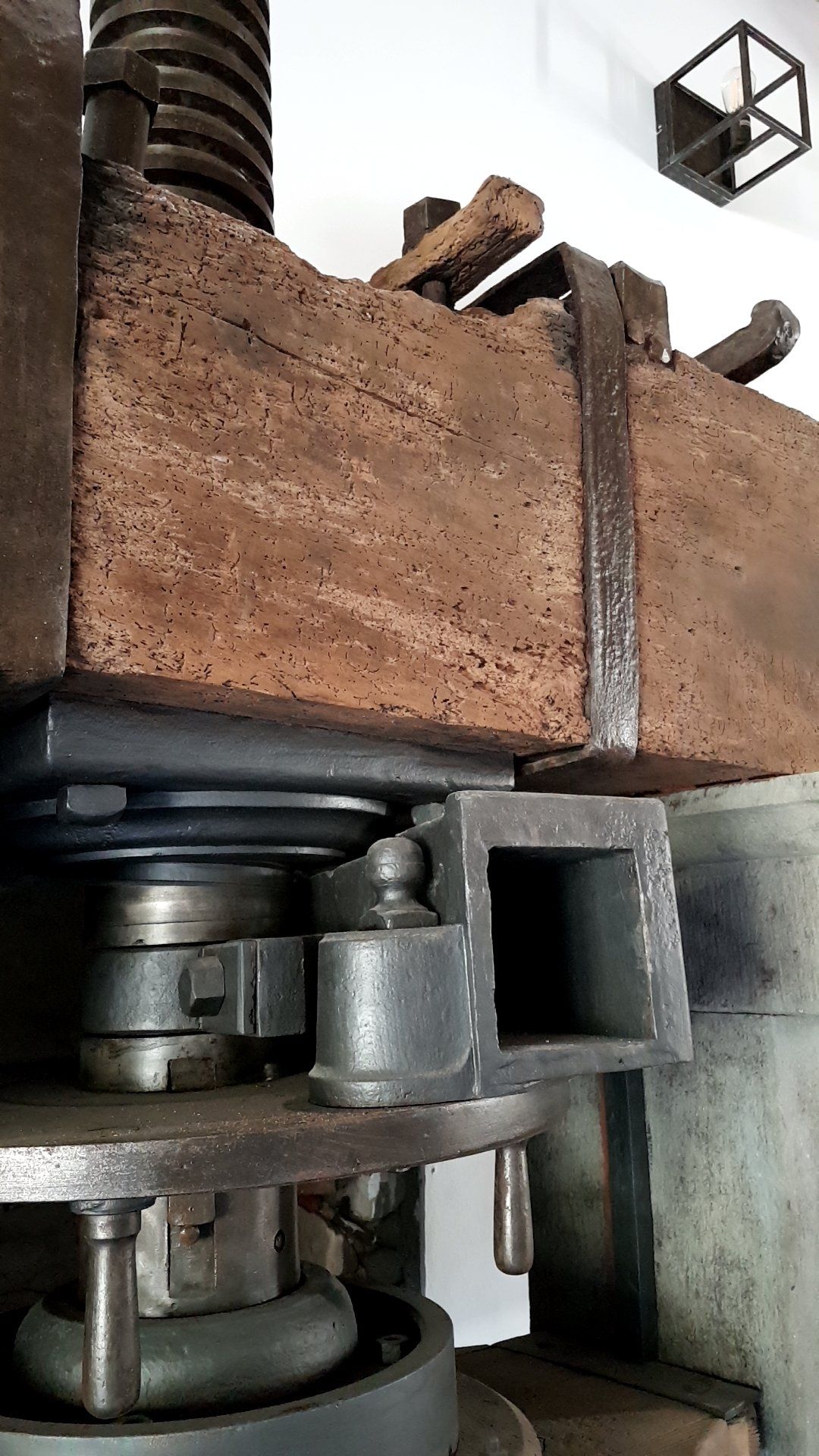 The oil extraction process in the mill involves the olives being poured into the crusher, the large water-powered wheel that moves the grinding stone, the crushing of the olives, and the loading of the mats, the press, the pressing, the sweat and effort required to extract every single drop of the precious green gold.