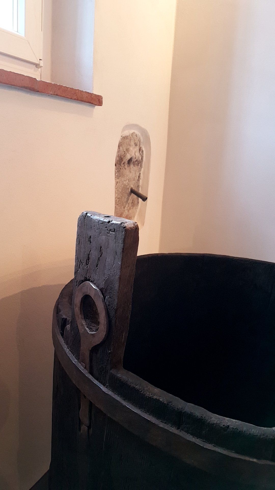 Then there's the hot water, used to separate and bring the olive oil to the surface in large cascading vats, and a tool resembling a circular metal disk, slightly conical in shape, used to collect the rising oil.